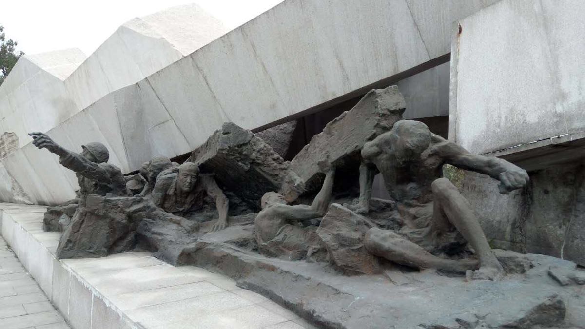 广场正前方是纪念水池,水池内主题雕塑采用石材和青铜质地,用写实的雕塑语言,展现唐山人民在灾难面前风雨同舟、患难与共的生动场面,激发人们珍爱生命、奋发向上的豪迈情怀。